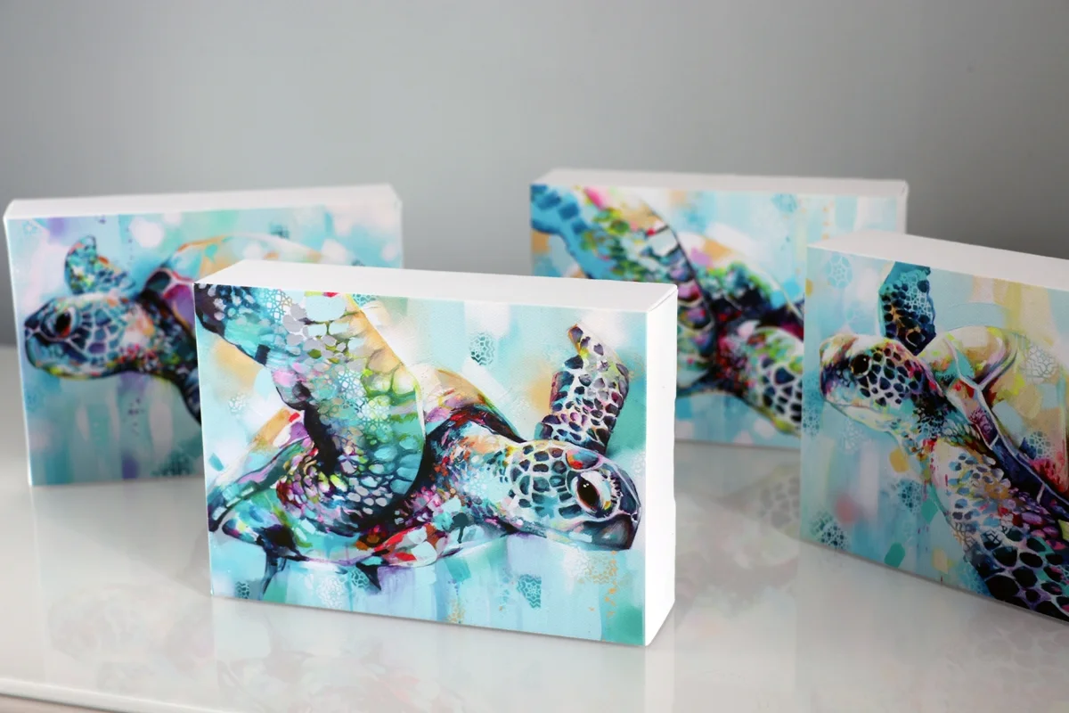 Sian spent much of the glorious heatwave of 2018 creating these turtles outside in her garden; the balmy evenings providing the perfect ambience for creating such sun-kissed paintings. So in your home, these paintings can be a year-round reminder of an endless summer - they radiate sunshine, optimism and serenity. And if you have a passion for turtles, the ocean, or travel, shouldn't your home reflect that too?